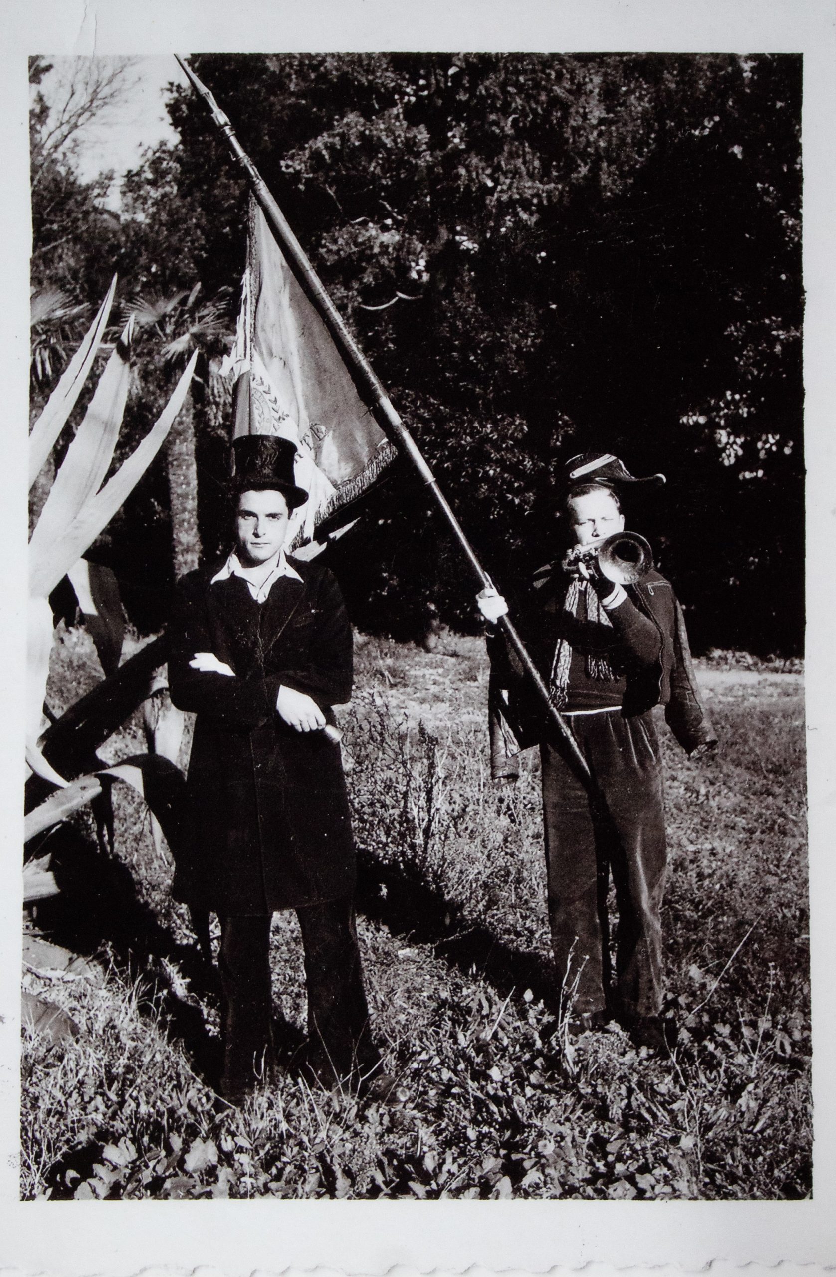 Avènement du président Jacques de Richemond accompagné de Helmut Lessing avec trompette et drapeau - 1950