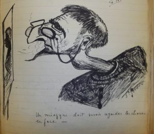 Un peu plus tard, dans les années 1950 c’est une étudiante, Annie Stiling qui fait des croquis de ses professeurs.